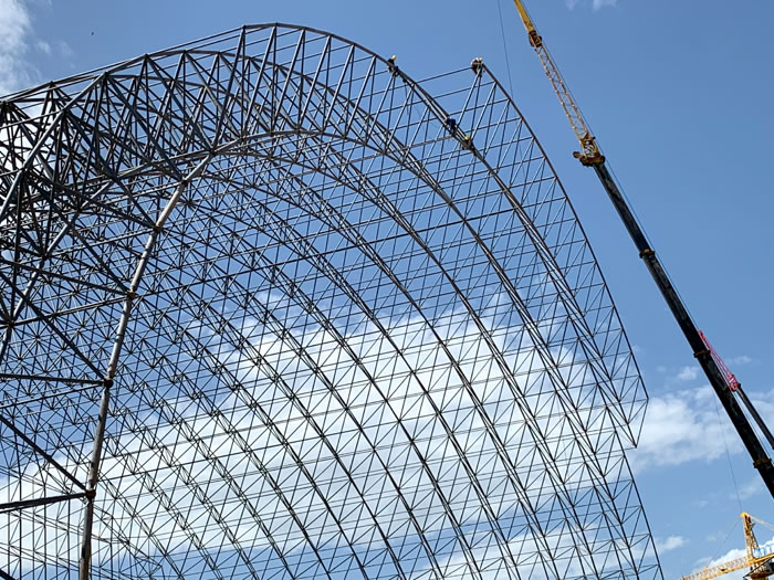 (2)网架加工前应对现场尺寸进行复测,确认无误后方可进行加工、安装;网架制作、运输、安装应遵守《空间网格结构技术规程》JGJ7-2010、《钢网架武冈螺栓球节点》JG/T 10-2009、《钢网架武冈螺栓球节点用高强度螺栓》 GB/T 16939-2016、《武冈钢结构武冈工程武冈施工规范》 GB50755-2012、《武冈钢结构武冈工程武冈施工质量验收标准》 GB50205-2020。